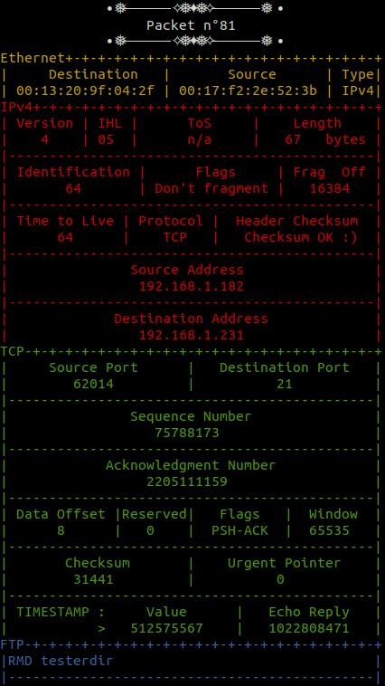 2. Analyse des champs réseau, y compris la vérification du checksum.